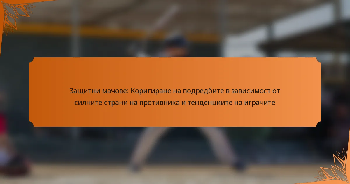 Дефанзивните мачъпи са основни стратегии, които включват подреждане на играчите с цел противодействие на силните страни на противниковите отбори. Чрез анализ на способностите и тенденциите на опонентите, отборите могат да направят информирани корекции на своите дефанзивни подредби, което в крайна сметка максимизира тяхната ефективност и увеличава шансовете им за успех на терена.