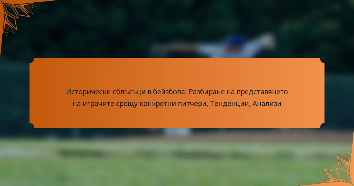 Представянето на играчите срещу конкретни питчери може да варира значително на базата на историческите мачове. Анализът на тези взаимодействия помага на отборите и анализаторите да разберат тенденциите в средните стойности на ударите, процентите на достигане до база и други ключови метрики, които влияят на резултатите от мачовете.